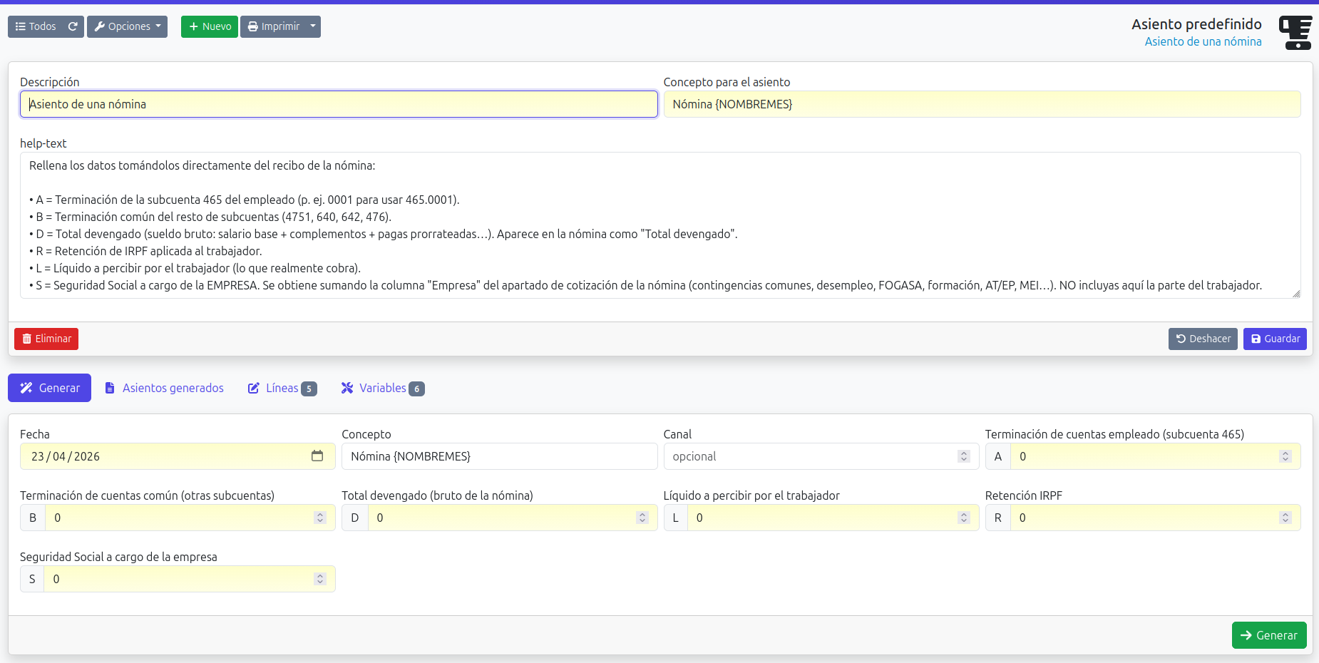 Descargar Demo ContactoCon este plugin puede crear plantillas de asientos para repetirlos rápidamente y ahorrar mucho tiempo con todos esos asientos que se repiten periódicamente, como nóminas, pagos, seguros, etc.