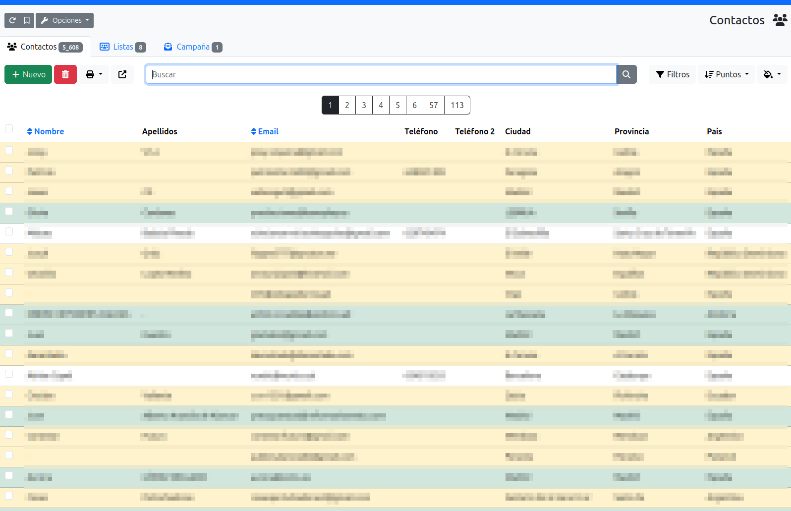 - Listas de contactos: podemos crear tantas listas como queramos, filtrar, añadir y quitar a golpe de clic.