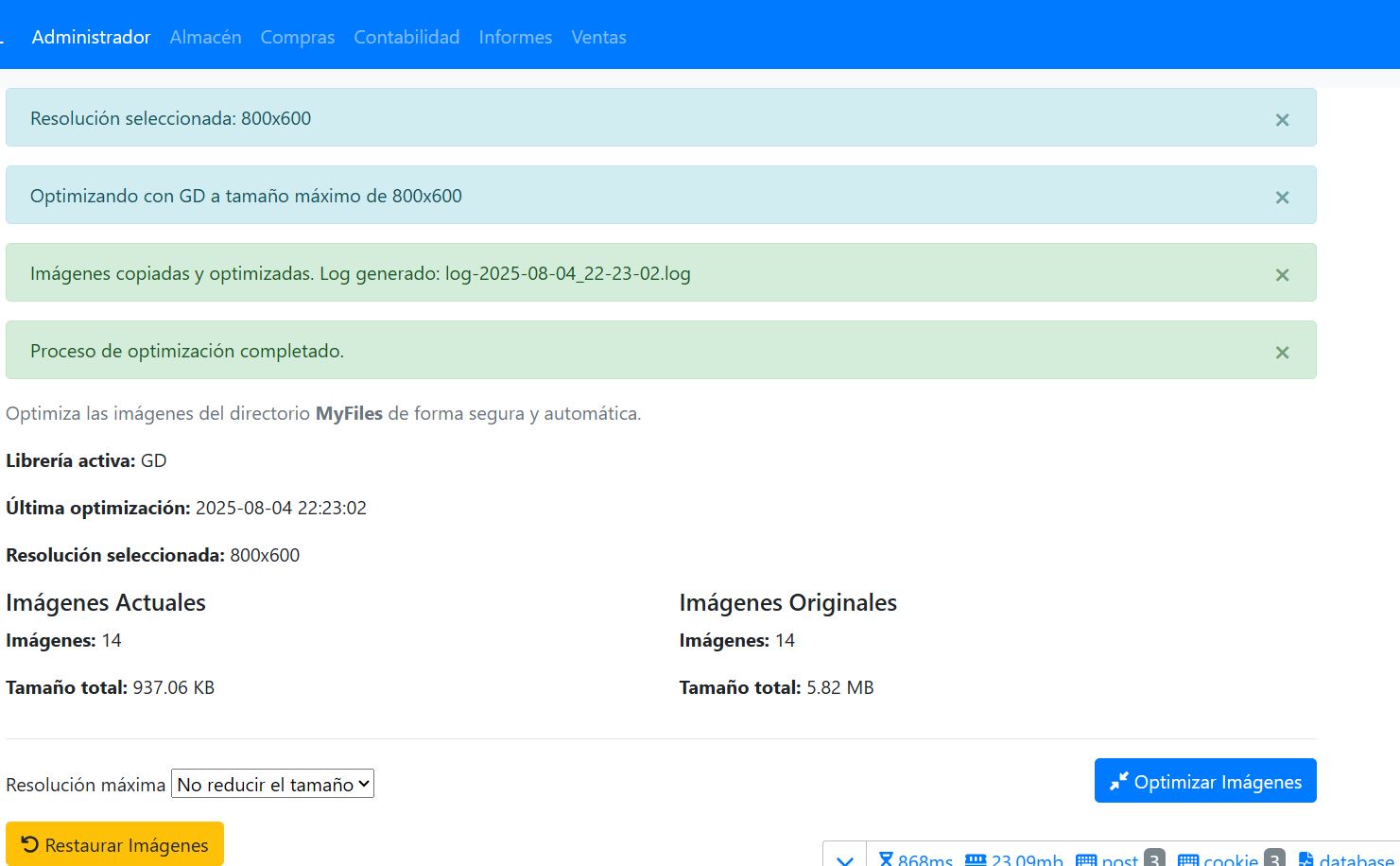 Con el Optimizador de Imágenes, no solo ganará velocidad, sino que también optimizará el espacio de almacenamiento y al usar las imágenes incrustadas en los documentos generados (por ejemplo pdf) será mucho más rápido al reducir considerablemente el tamaño de las mismas.