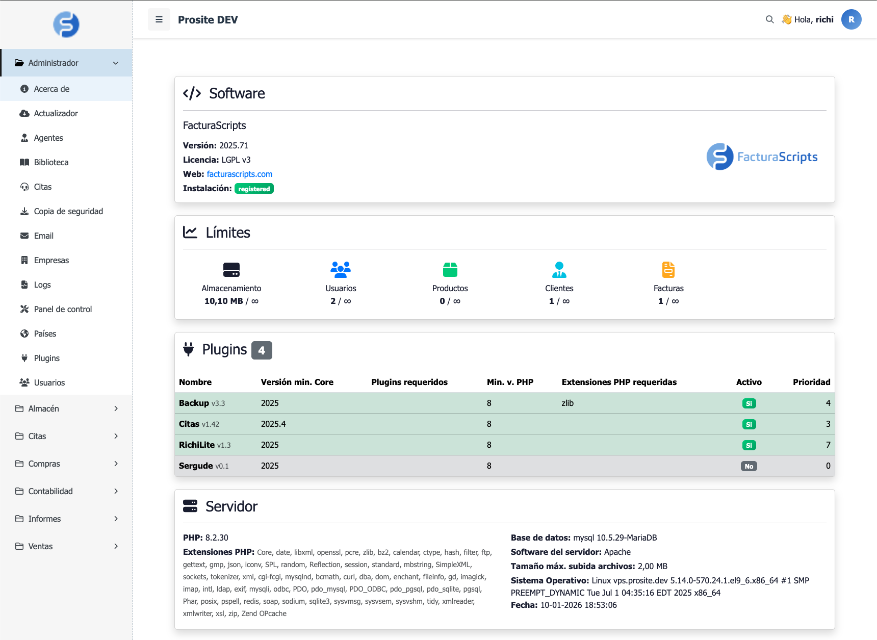 Descargar ContactoRichiLite Theme es un tema minimalista y a medida para FacturaScripts, creado desde su estructura base para renovar la interfaz con un enfoque limpio y práctico: