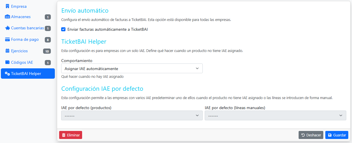 - Asignación automática del IAE en factura incluso a productos que no tienen IAE establecido o lineas manuales.