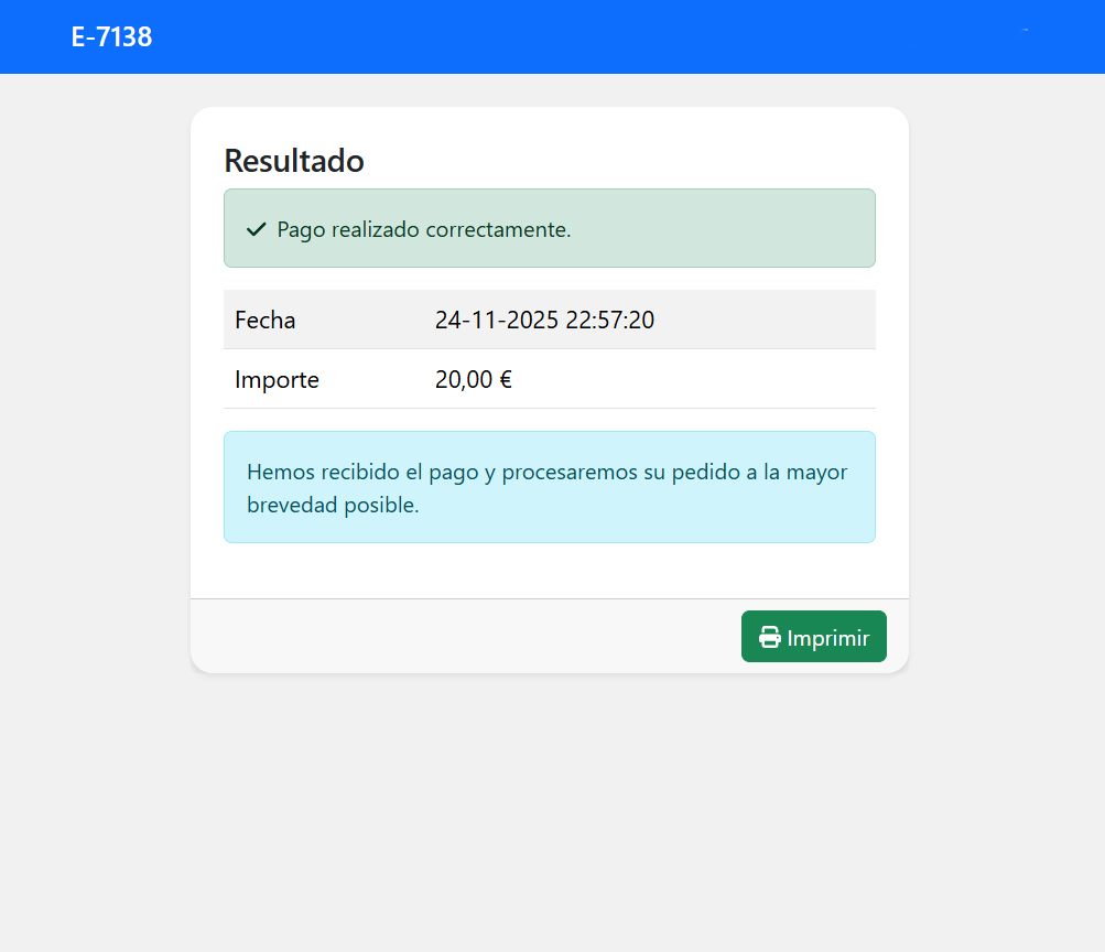 ✔ Validación automática del pago mediante notificación (callback) de Redsys.