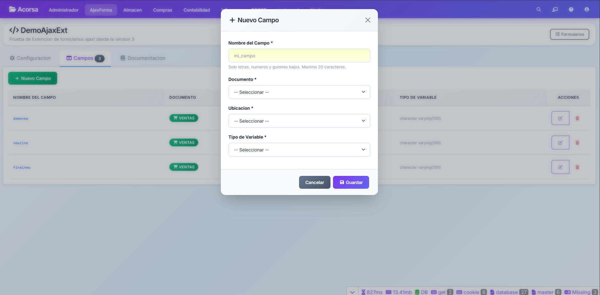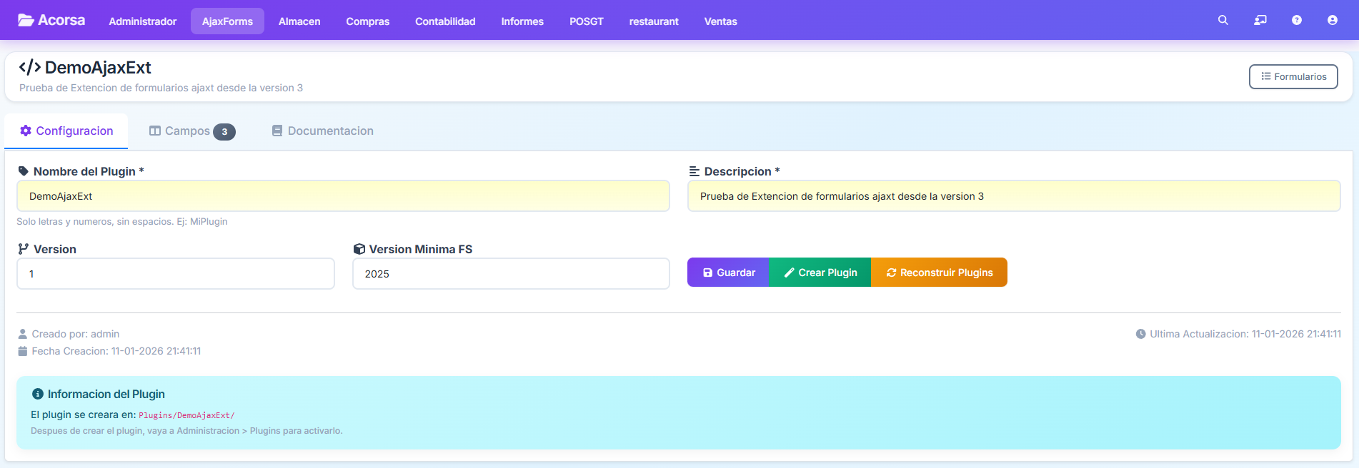 ¿Que es ExtAjaxForms? ExtAjaxForms es un generador de plugins que permite agregar campos personalizados a los formularios de compras y ventas de FacturaScripts sin escribir codigo.