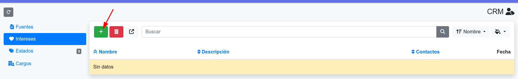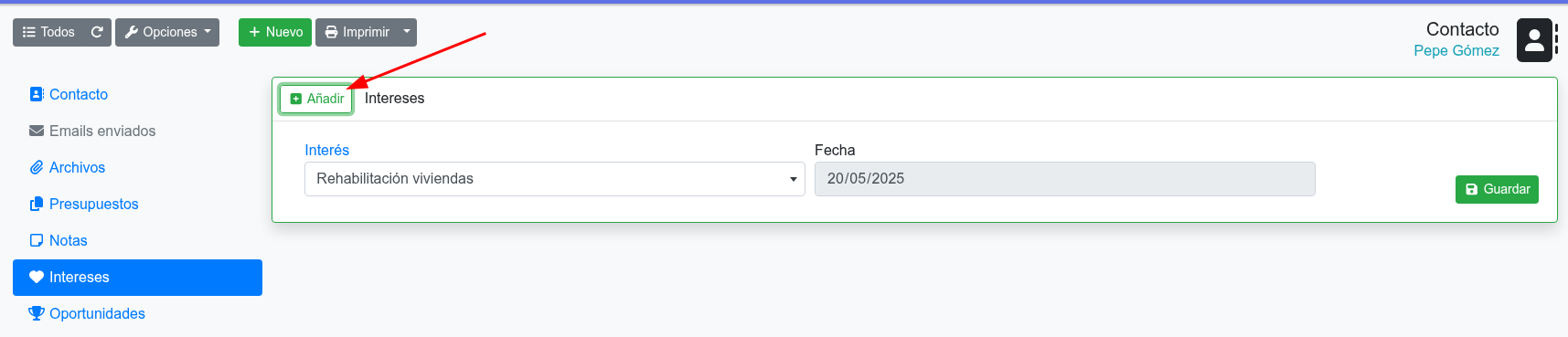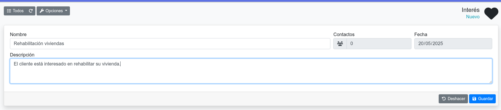 - Añadir un nuevo interés: Haz clic en el botón nuevo para crear un nuevo interés.