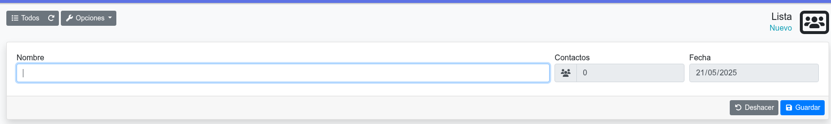 Para la lista solamente debe indicar un nombre y pulsar el botón guardar.