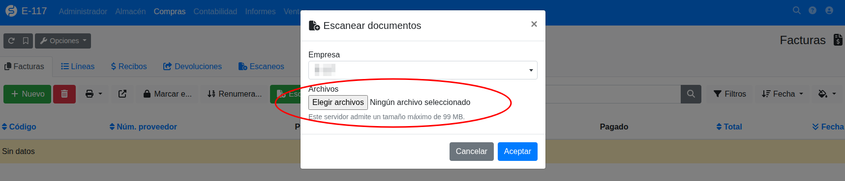 Aparecerá una ventana donde debes seleccionar el archivo (puedes seleccionar muchos archivos y escanear varias facturas a la vez).