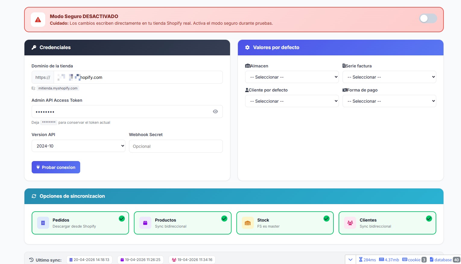 Admin API Access Token Token privado generado en Shopify Si se deja vacío, se mantiene el actual