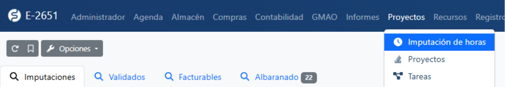 - Ve a la pestaña de Proyectos y entra en Imputación de horas.