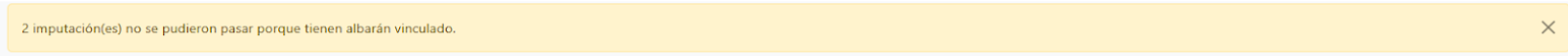 Soporte visual de mensaje de error al intentar mover imputaciones con un albarán vinculado.