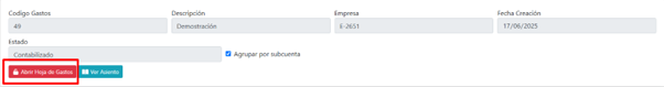 Si por alguna razón nos arrepentimos de agruparlo y queremos que salgan desglosados es tan sencillo como volver para atrás y darle al botón de abrir hoja de gastos
