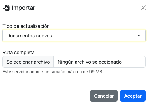 iddocumento). - Si se selecciona el proceso de "Actualizar los datos" y existe el identificador de documento, se actualizará el documento correspondiente.