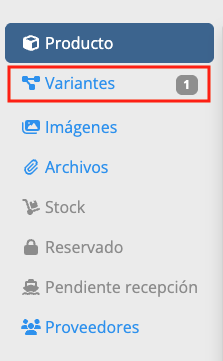 La pestaña Variantes será visible si el producto tiene múltiples variantes y en caso contrario en función de la configuración establecida en el panel de administración. Según la opción seleccionada: