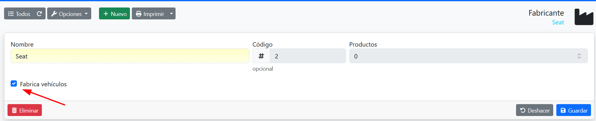 Podemos indicar cuales de los fabricantes se considerarán como fabricantes de vehículos.