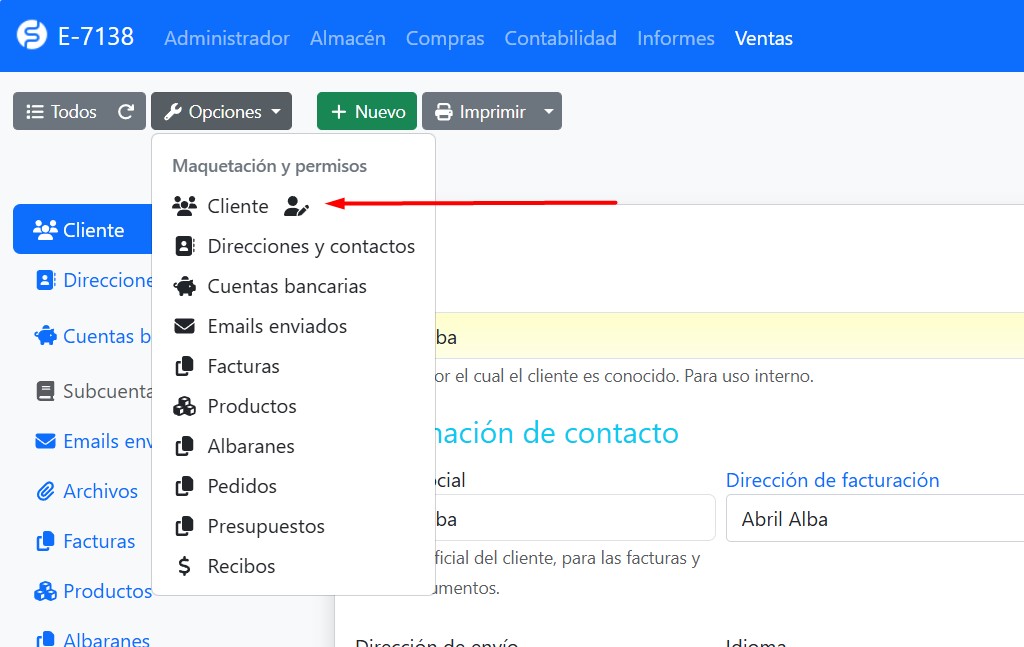Por ejemplo en Ventas > Clientes pulsamos en Opciones > Clientes (igual para contactos) verás las opciones de Editcliente, baja hasta el final y pulsa Eliminar