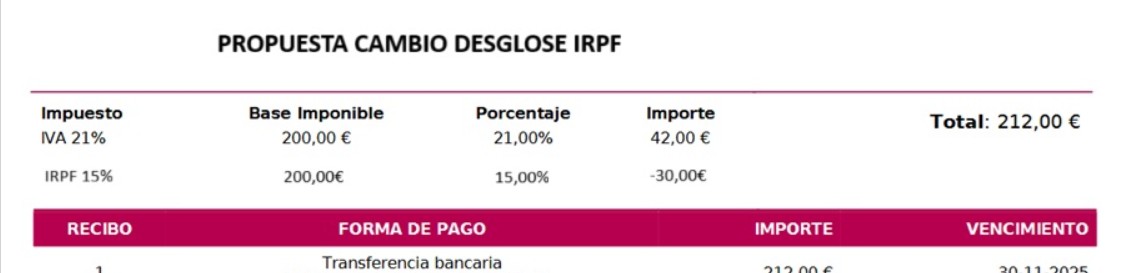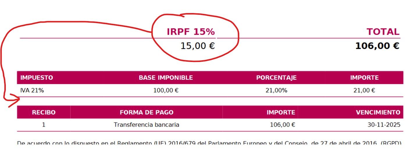 Estamos valorando la migración a FS y la adquisición del plugin de plantillasPDF, hemos realizado pruebas con la versión de prueba en la nube y hay un detalle relacionado con los impuestos que debería de tenerse en cuenta como mejora, y es la ubicación del IRPF.